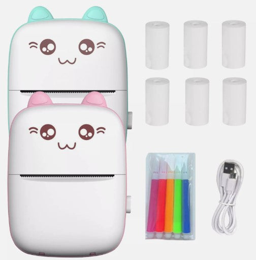 📦 ¿QUÉ INCLUYE ESTA OFERTA EXCLUSIVA? ¡Te enviamos el KIT COMPLETO para que empieces hoy mismo! 🖨️ 1x Mini Impresora (Diseño Gatito). ⚪ 5x Rollos de papel estándar. 🏷️ 5x Rollos de papel ADHESIVO (¡Haz tus propios stickers!). 🌈 3x Rollos de papel a color. 🖍️ 6x Marcadores de regalo. 🔌 Cable USB + Manual.